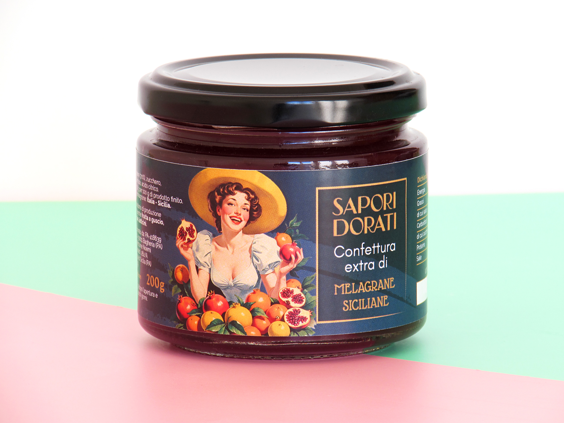 La nostra confettura extra di melagrana è composta da sola frutta fresca siciliana, senza aggiunta di aromi artificiali. Dal colore rosso brillante e dal sapore dolce-acidulo, per questa confettura vengono impiegati 100 g di frutta per 100 g di prodotto finito. La percentuale di frutta utilizzata permette di definire tale confettura, extra, in quanto la quota di polpa di frutta presente supera il range di riferimento. La melagrana viene raccolta al giusto grado di maturazione e successivamente, tramite un’accurata preparazione, viene lavorata senza l’aggiunta di coloranti e aromi artificiali. Un prodotto totalmente genuino, una proposta insolita e accattivante che stuzzicherà il vostro palato, facendo scoprire una confettura non stucchevole e versatile. Una lista ingredienti che strizza l’occhio ad un’alimentazione plant-based con la totale assenza di prodotti di origine animale. Il consumo della confettura di melagrana Sapori Dorati vi regalerà una generosa dose di antiossidanti, naturalmente contenuti nei chicchi, che contrasterà l’invecchiamento.