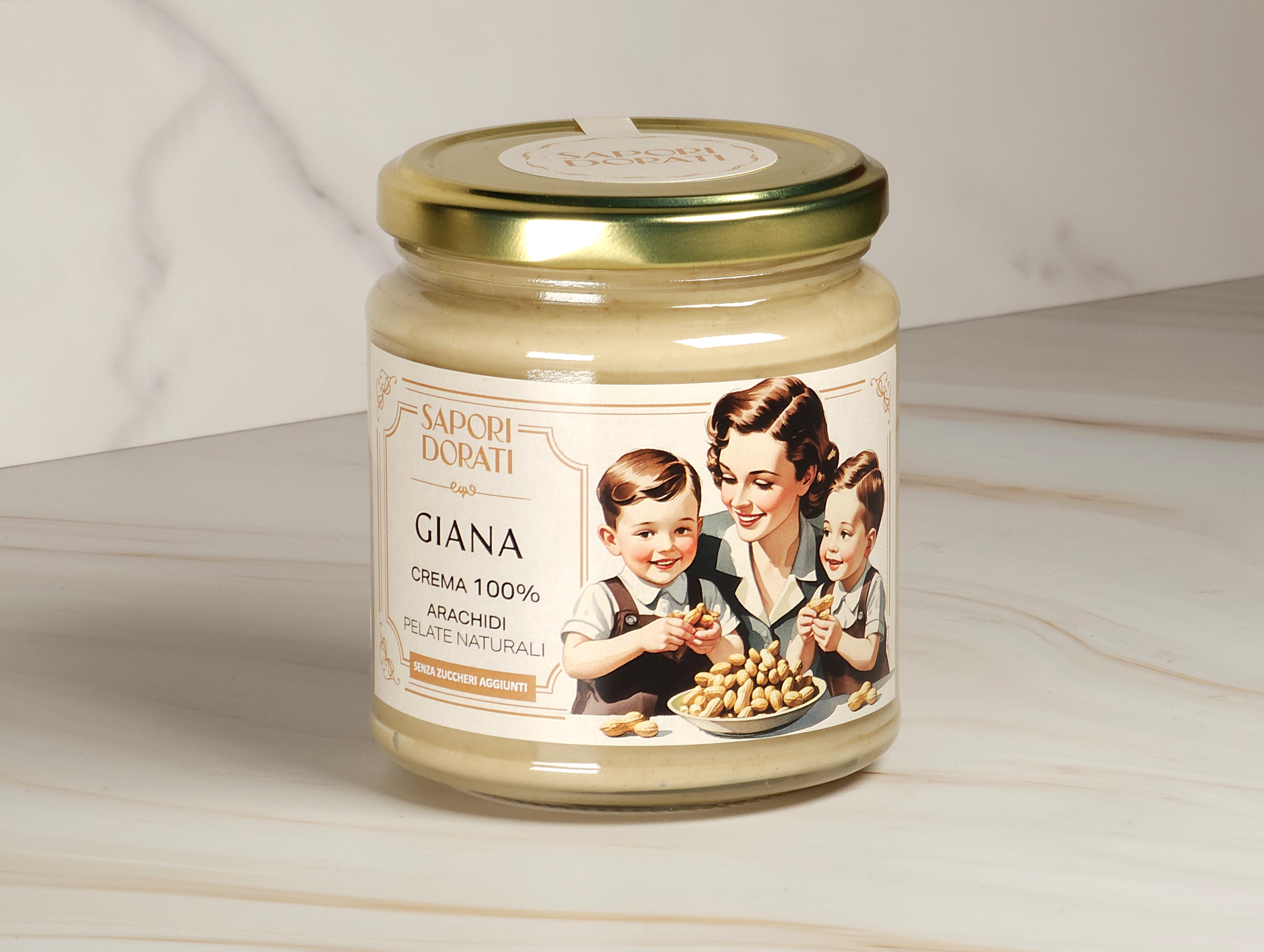 Attraverso un processo meticolosamente controllato, volto a preservare l’integrità organolettiche e le caratteristiche sensoriali, nasce Giana. La materia prima viene attentamente selezionata per garantire standard qualitativi elevati. Il gusto naturale molto intenso, quasi insolito, richiama note di legumi, ossia ciò che botanicamente rappresentano le arachidi. La non tostatura ne preserva in toto tutte le aromaticità complesse, enfatizzando il sapore pulito senza artefici gustativi. Giana rappresenta una ricca fonte di energia naturale, un profilo lipidico e proteico elevato, ideale per chi desidera un prodotto nutriente, naturale e funzionale. Entra a far parte delle creme 100% con una texture corposa, volutamente grezza, che mantiene inalterata l’autenticità dell’unico ingrediente. Lavorata senza zuccheri aggiunti, oli, sale, aromi e conservanti, si distingue per la sua estrema versatilità, sia in piatti dolci che salati. Il suo gusto ricco si sposa per piatti etnici, salse, condimenti, hummus. Giana rappresenta una dichiarazione di essenzialità, un tributo alla materia prima e alla sua sapiente lavorazione.