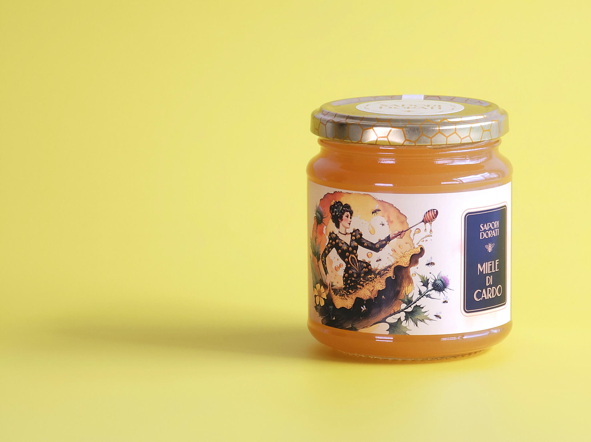 Noto per le sue proprietà antiossidanti, per la presenza di vitamine e non solo, il miele di cardo è particolarmente amato e scelto per donare dolcezza e intensità di sapore. L’estrazione avviene a freddo tramite forza centrifuga che garantisce la massima qualità del prodotto e il mantenimento delle caratteristiche organolettiche che non vengono alterate tramite altre tipologie di estrazione e lavorazione. Il colore è ambrato, la consistenza è densa ma fluida, e il gusto è intenso con note di fondo floreali e leggermente pungenti. Il miele di cardo a basse temperature potrebbe subire fenomeni di cristallizzazione, durante questo evento il colore diventa più chiaro e la consistenza più compatta e granulosa, ma in nessun modo vengono alterate gusto e proprietà benefiche. Qualora il miele subisse il processo di cristallizzazione sarà possibile fluidificarlo, se si desidera, riponendo il vasetto per qualche minuto all’interno di acqua calda con una temperatura inferiore a 40°. Il miele di cardo Sapori Dorati non subisce nessun processo di lavorazione industriale, mantenendo inalterate le proprietà benefiche. Questo miele è prodotto da api nere siciliane che all’interno dell’alveare depositano il nettare del fiore di cardo. Ottimo per dolcificare naturalmente tisane, yogurt, torte, biscotti, perfetto per glassare carni rosse e bianche, o per accompagnare una vasta selezione di formaggi.